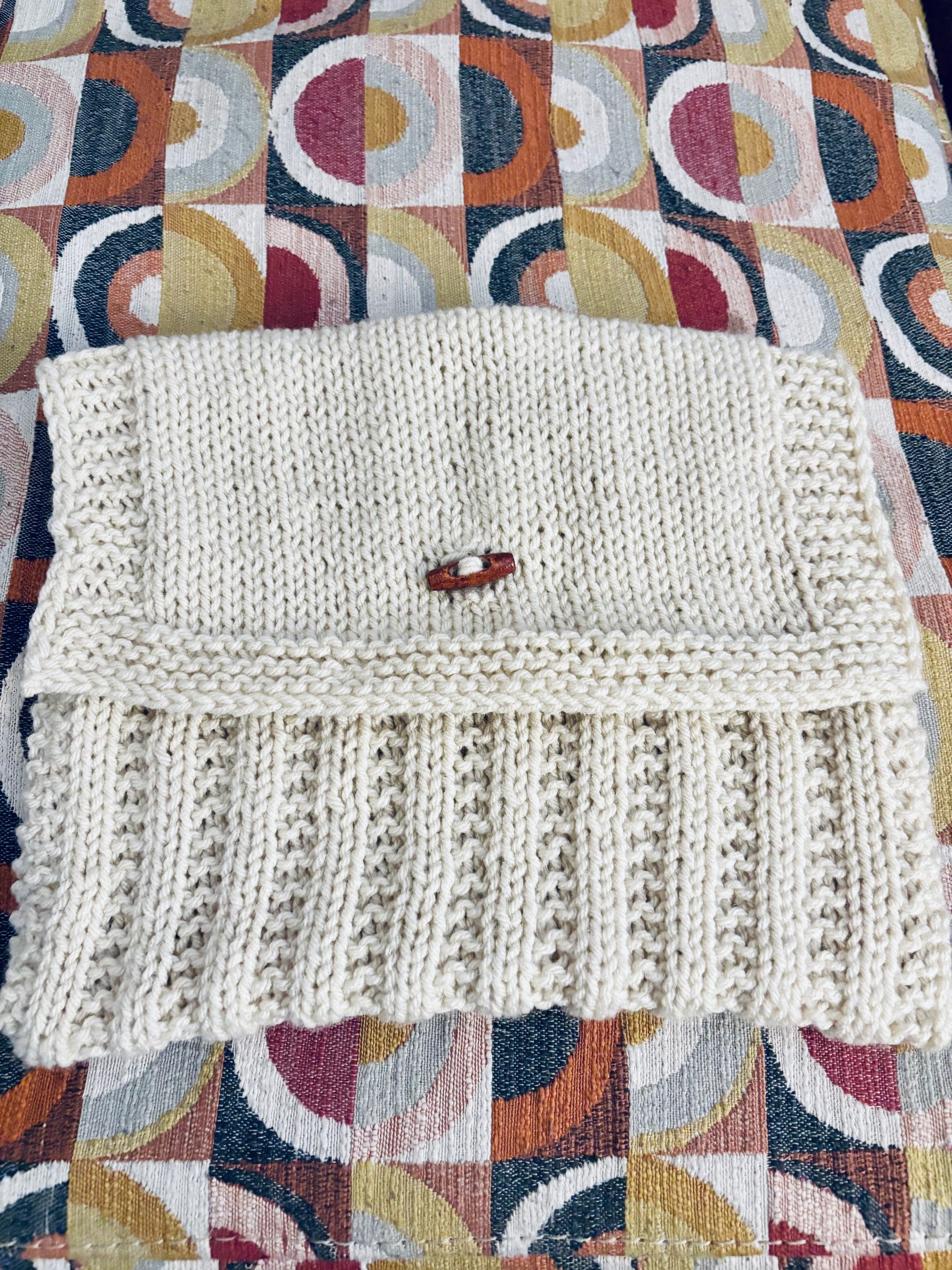 This satchel is perfect for any day- summer or winter. The bag is completely hand knit and has a cotton plaid lining to keep your belongings secure. It also features a wooden toggle to close the flap. The strap is 30” long.