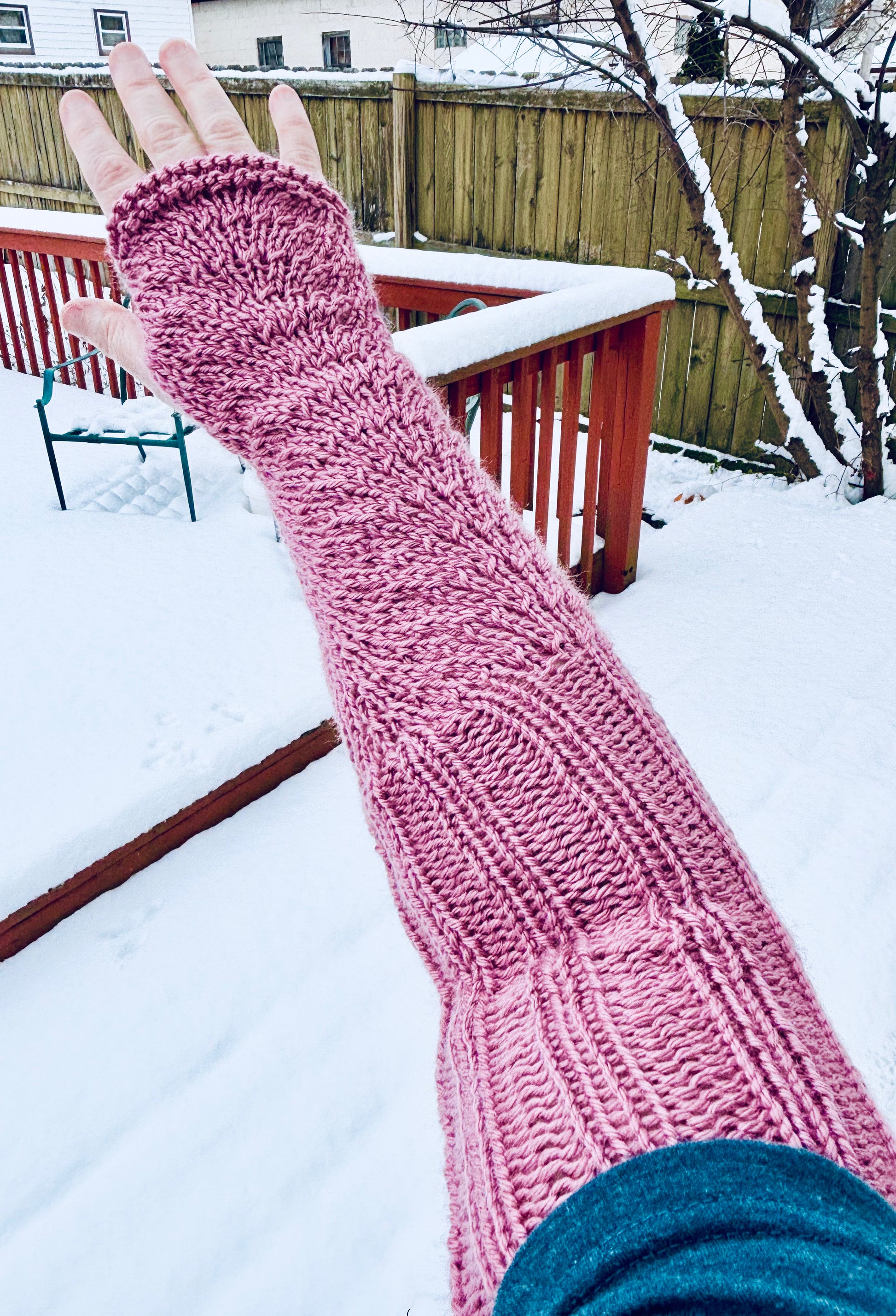 This is a piece that is near and dear to my heart. My sensuous arm warmers are one of my favorite pieces and I had a lovely friend ask if I could extend them to be a full sleeve for her to wear under her tee shirts at protest rallies. My answer was “of COURSE!” and the Protest Sleeve was born! These sleeves measure 22” from knuckle to upper arm and are made to fit snugly around the upper arm to minimize slipping. Knit of a super soft yarn, they are machine washable. Custom colors and sizes are always available by request on your order form. (I would love to do a rainbow pair!!) They are knit to order, so please allow for 7-10 days for shipping once I receive your order.